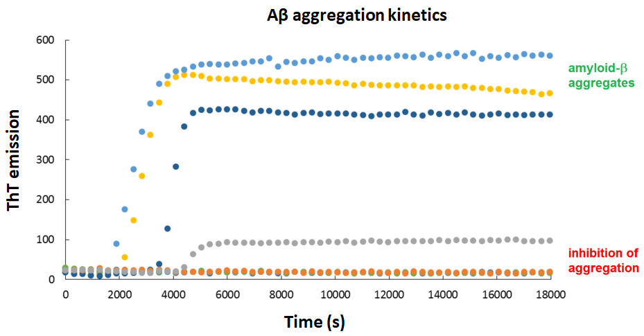 We have developed a new fast, simple, and inexpensive method to screen potential inhibitors of amyloid aggregation.